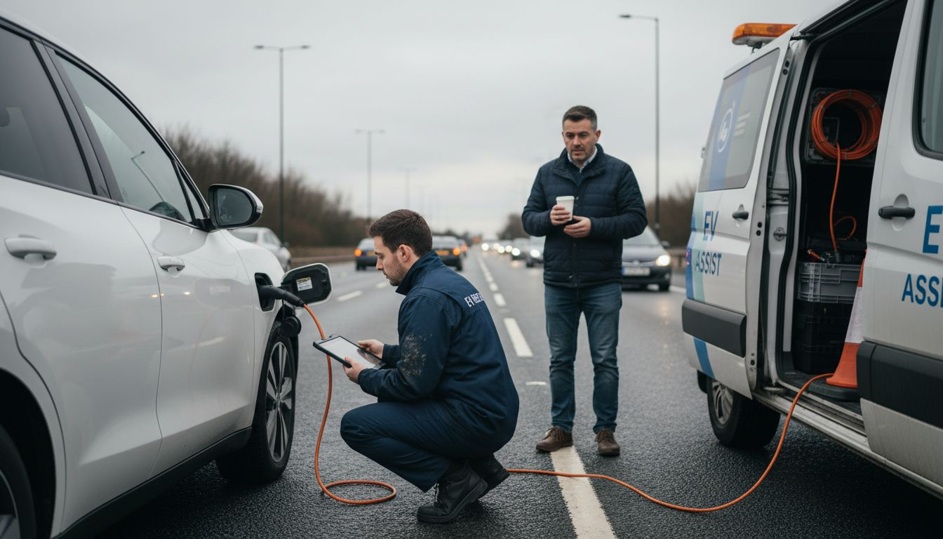 When your EV breaks down, immediately inform your breakdown provider about the vehicle type. Request EV-qualified assistance to avoid sending inappropriate recovery vehicles that cannot help.